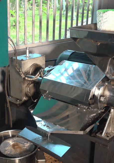 After grinding, we allow the coconut meat to dry with our gas operated dehydrator. This process allows the reduction of moisture of the desiccated coconut. When it reaches optimal condition of moisture, we go to the next stage ensuring the oil is of the highest quality and purity.